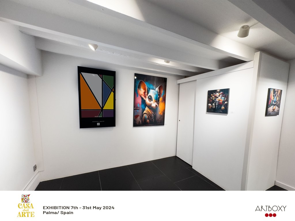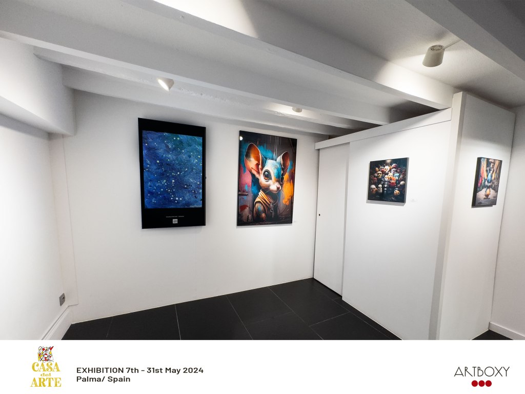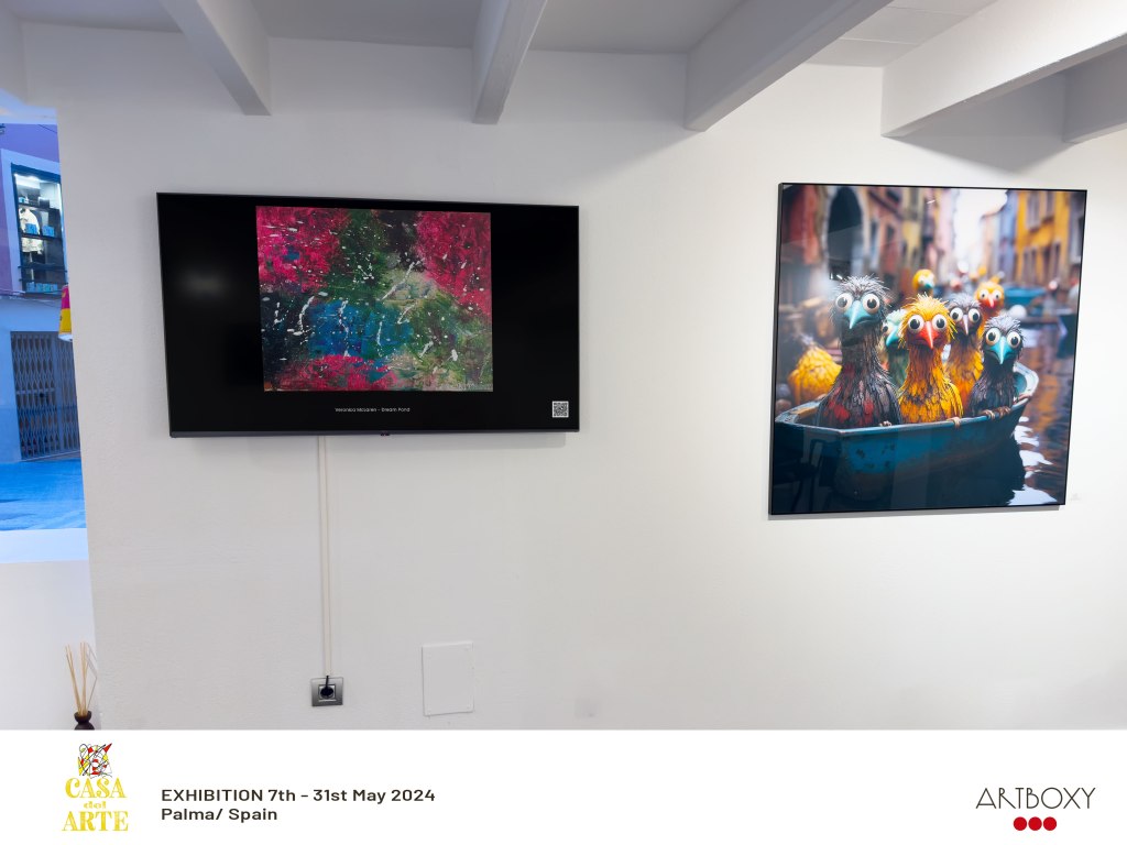 Also, following up on my 5/1/24 blog post, three of my works are being exhibited in Palma, Spain! The three works are Dream Pond, Galaxias, and Abstract 0224. The gallery Casa del Arte in Palma works in partnership with Artboxy, who has permanent gallery screens in their space, and they showcase art from international artists every month. My three works are being shown from 5/7/24 – 5/31/24. Check out the photos below – this is pretty awesome!
